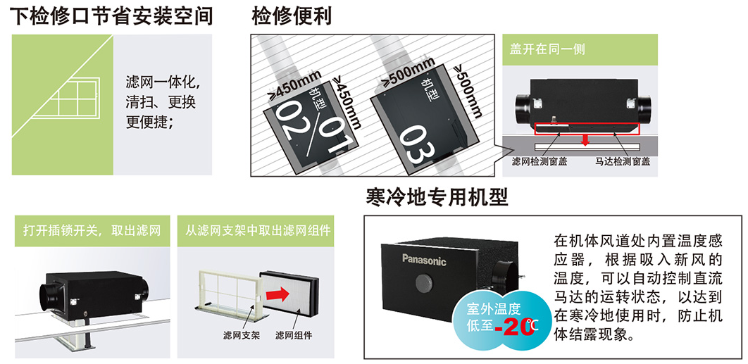完善的凈化進風系統帶給你健康優質生活、松下專利設計升級凈化體驗、高靜壓、松下專利低噪音技術