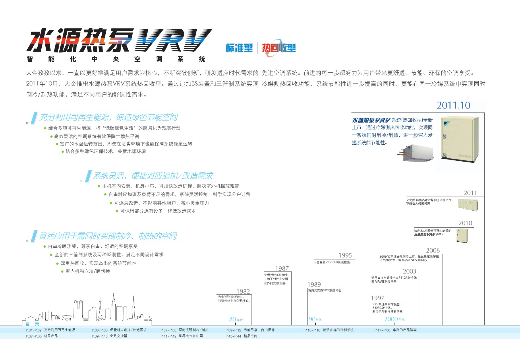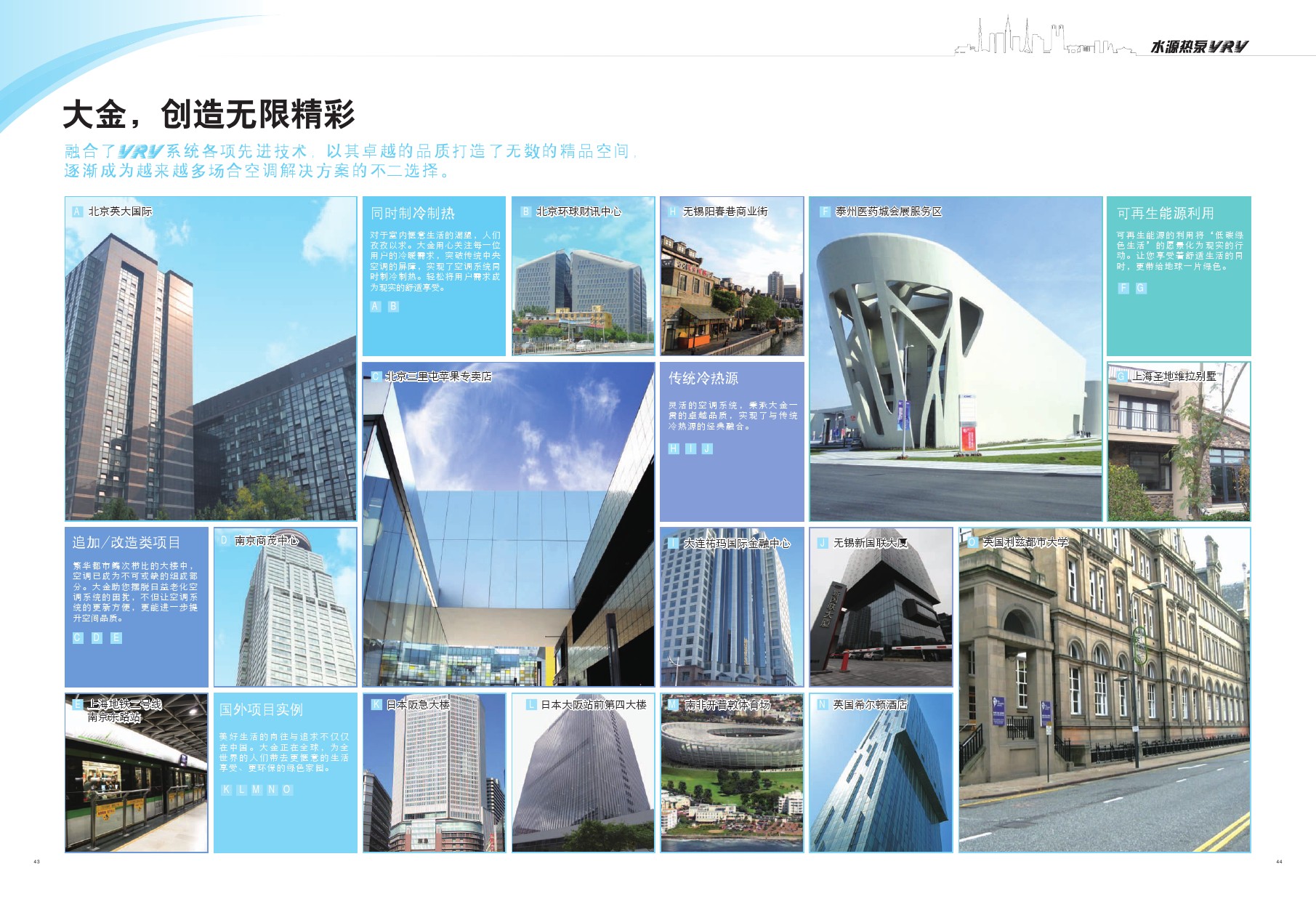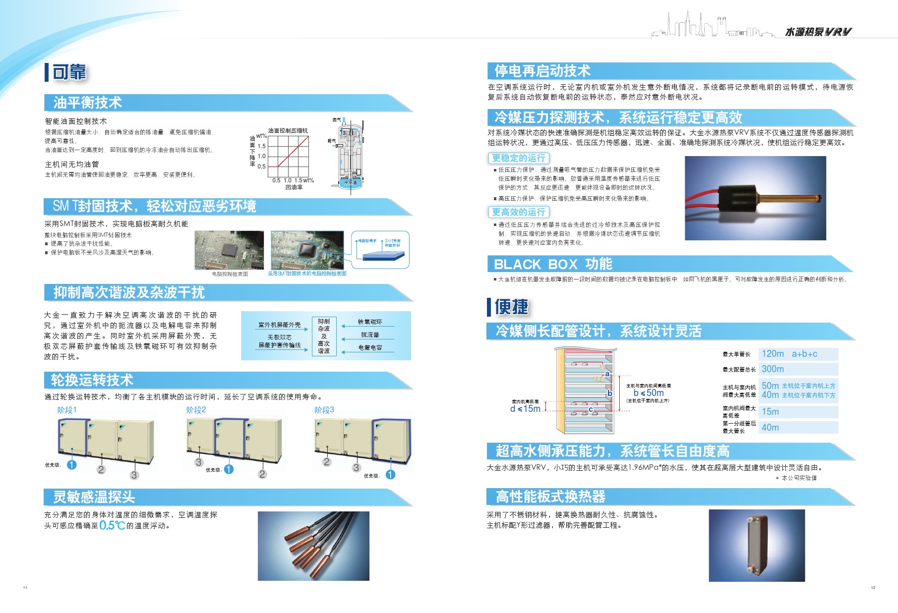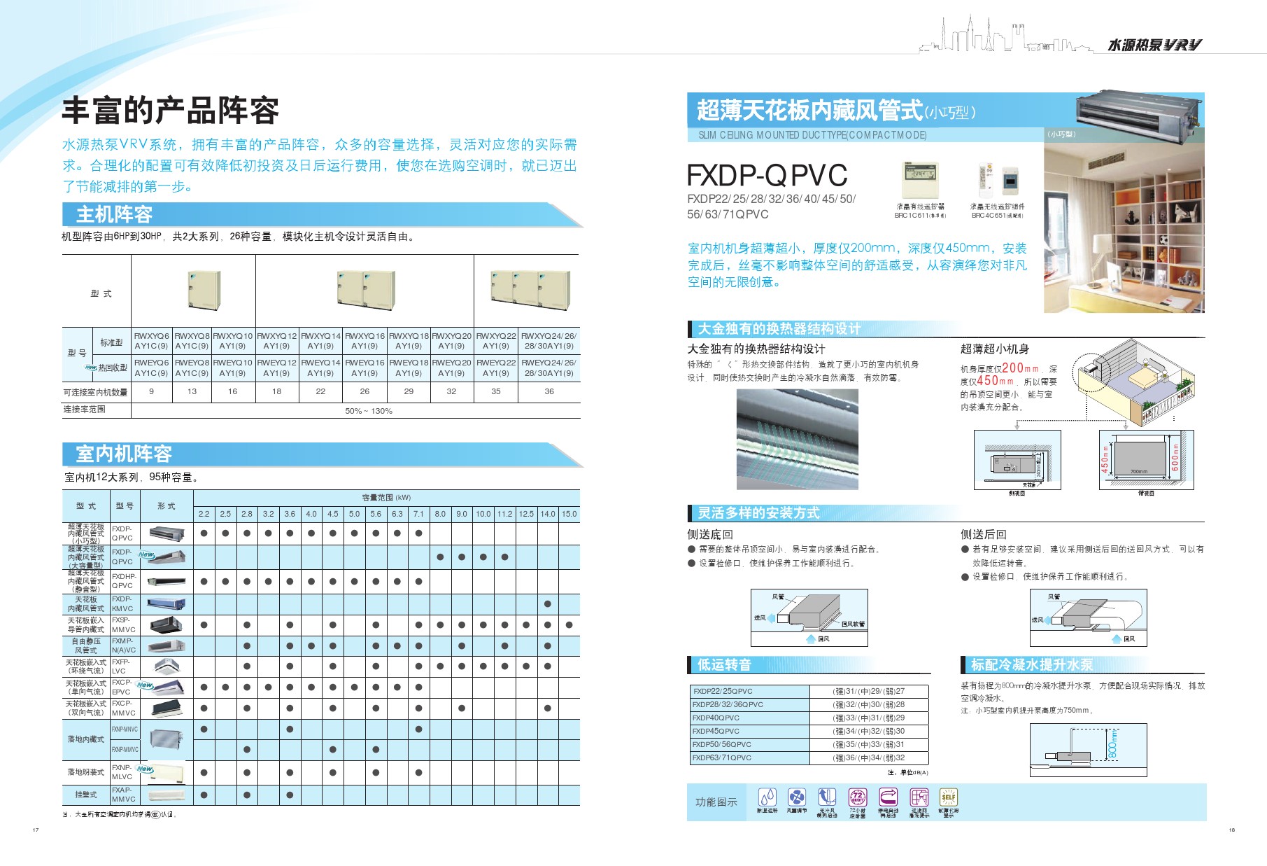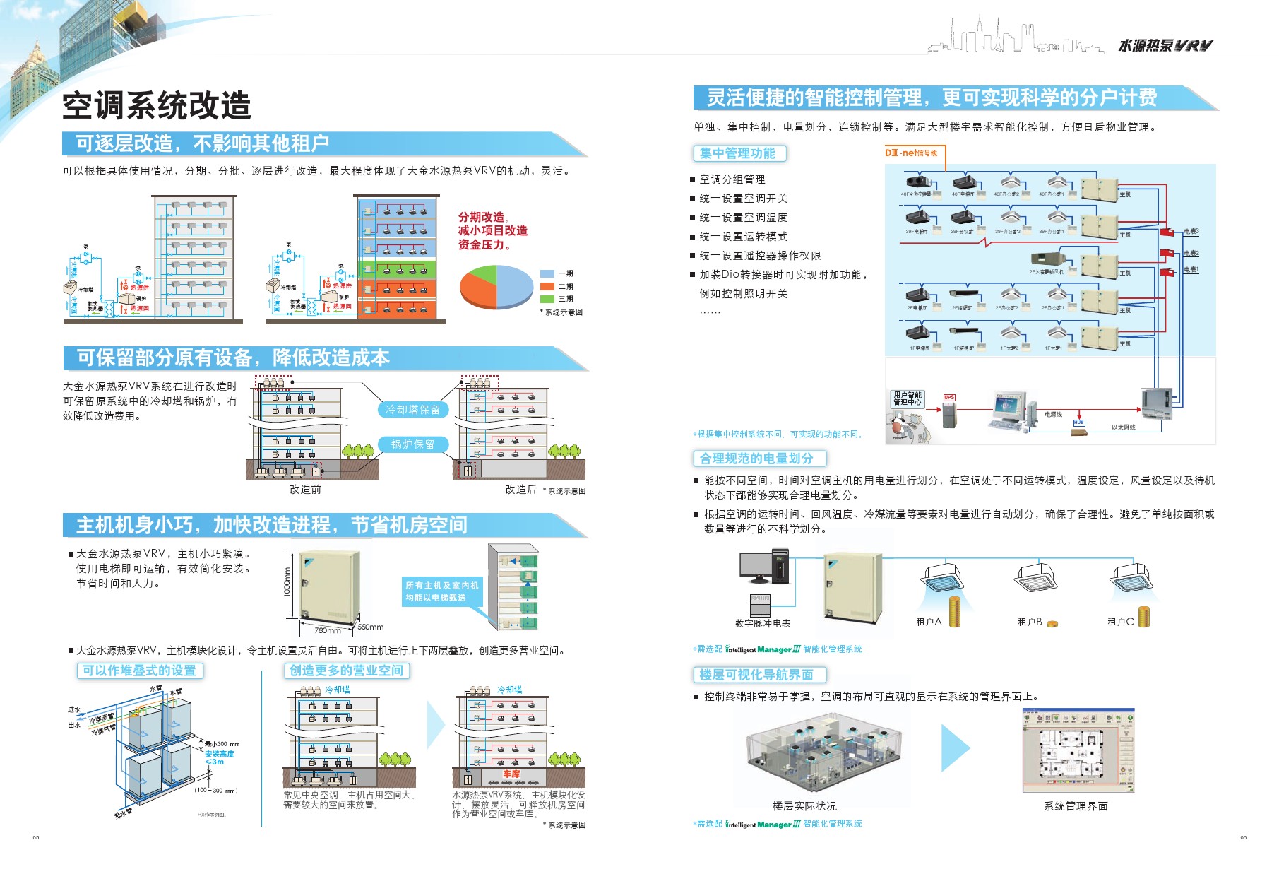 秉承了VRV系列產品的節能、管理控制方便等優點,在室外換熱側采用了水源作為冷熱源,水側無高低差及管長限制、設計、安裝自由度高。熱源側除傳統的鍋爐冷卻塔以外,還可以利用水/地源等可再生能源,讓各類不同需求的現代化建筑的空調方案更加靈活和節能。