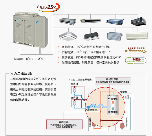 (2)運轉范圍寬廣,制熱連續運轉范圍低至-25℃