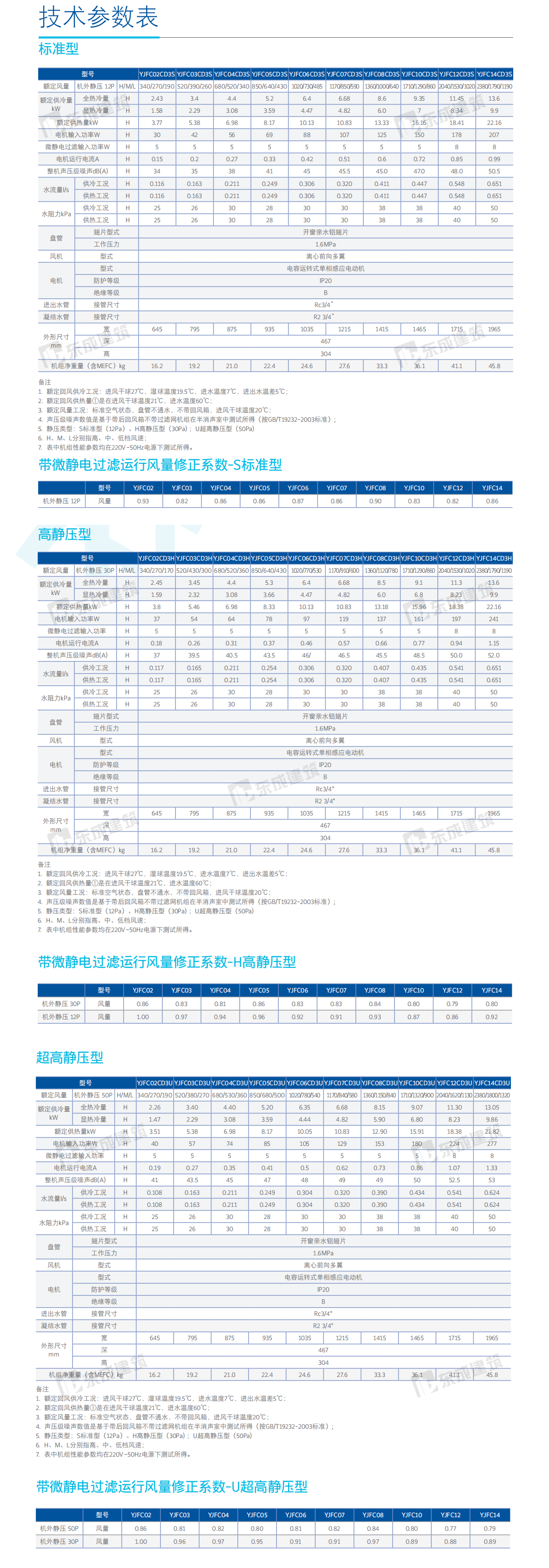 • 產品型號: YJFC02//03/04/05/06/07/08/10/12/14CD3S/H/U(標準靜壓/高靜壓/超高靜壓)